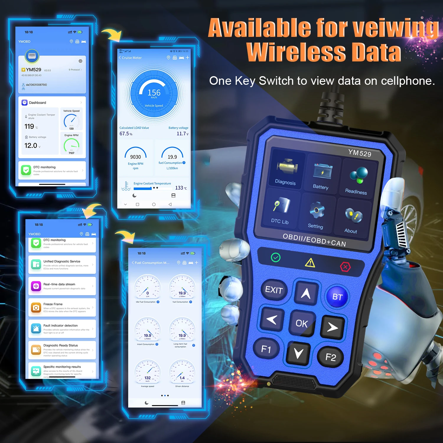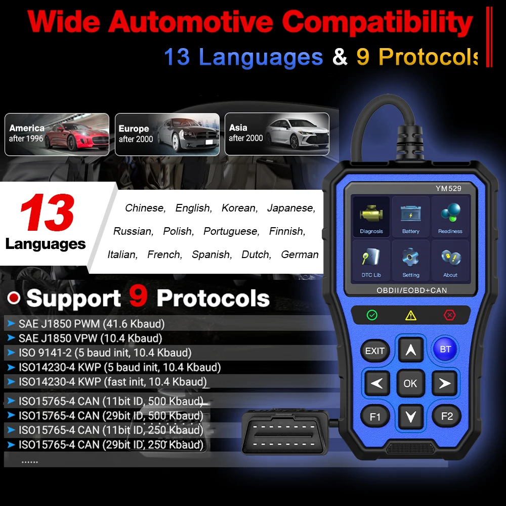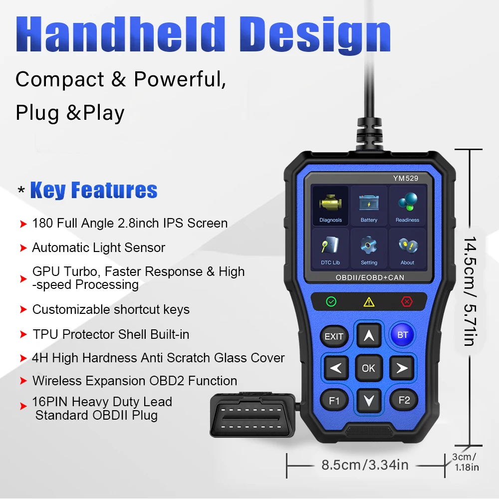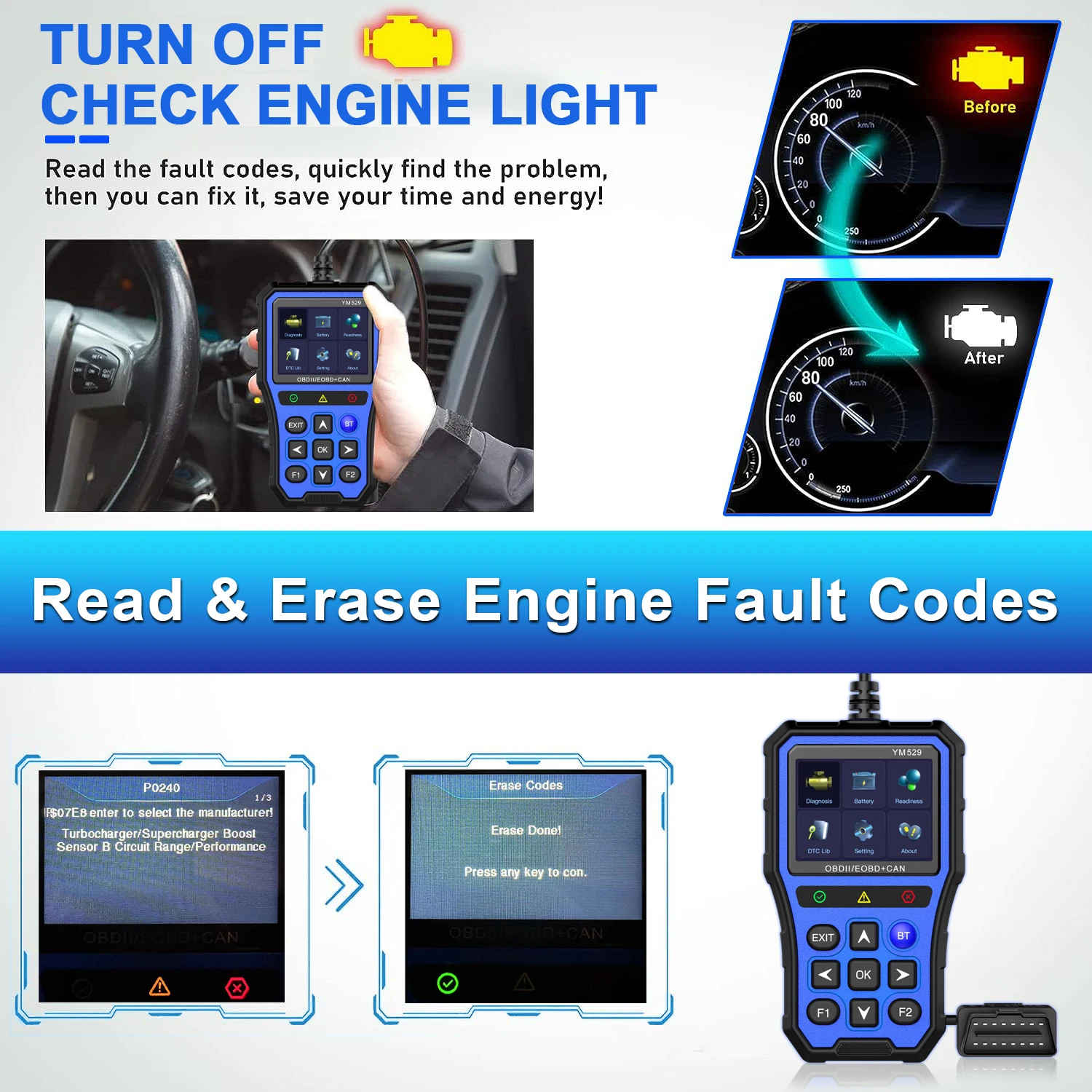 YM529 OBD Scanner OBD2 Code Reader Car Auto Diagnostic Tool Work for All Cars made under OBD II Protocols