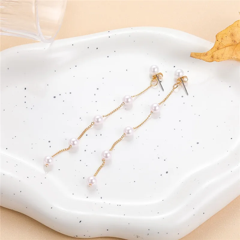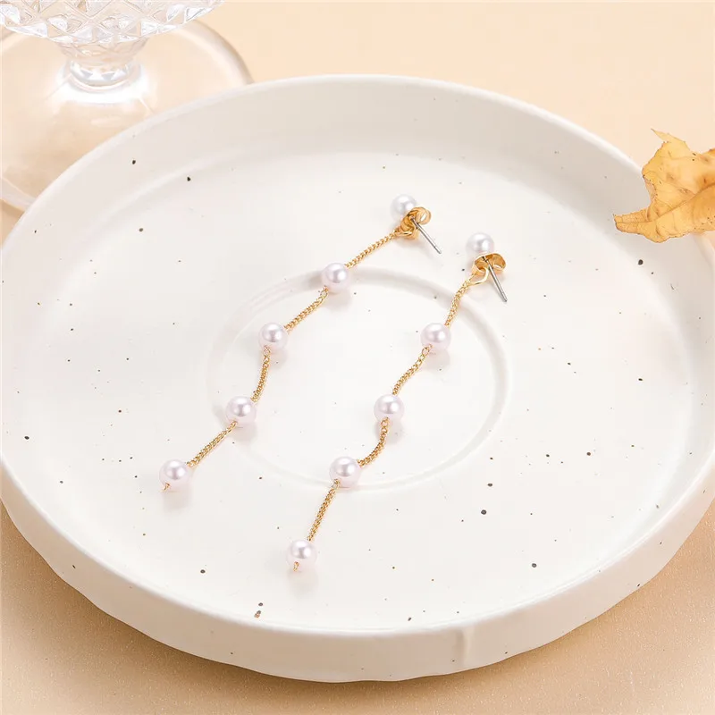 New Trend Fairy Simulated Pearl Women Long Earrings White Round Pearl Wedding Pendant Earrings Korean Fashion Jewelry Earrings