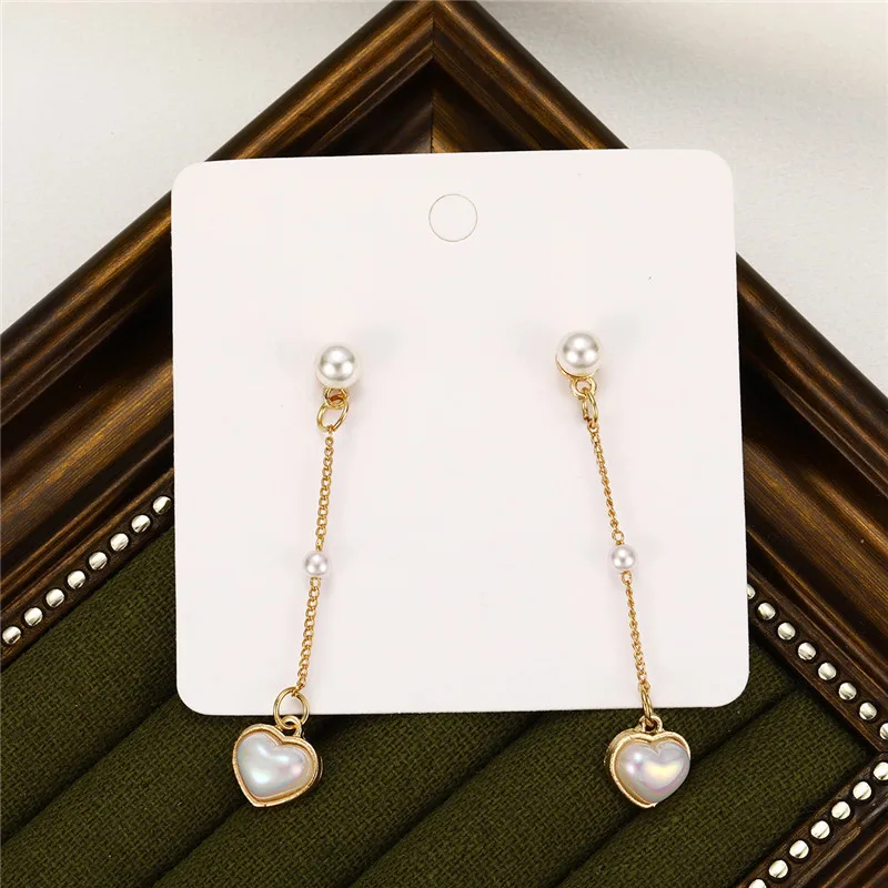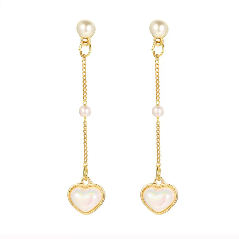 YOBEST 2024 New Fashion Long Dangle Heart Pearl Earrings Sweet Elegant Temperament Women Drop Earrings Jewelry Gifts