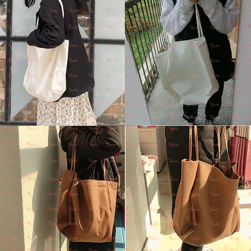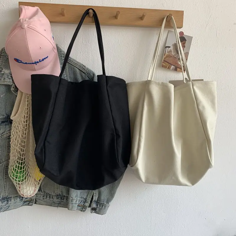 Yogodlns Cusual Canvas Handbag For Women Large Capacity Tote Bag Simple Solid Color Shoulder Bag Shopping Big Reusable Lady Tote