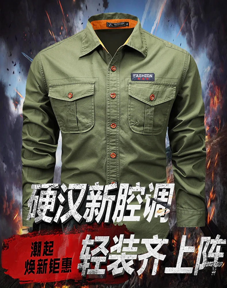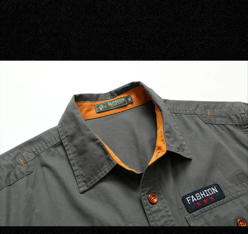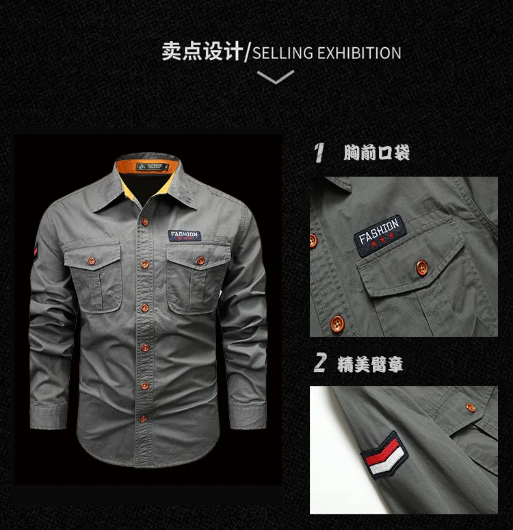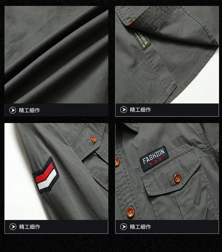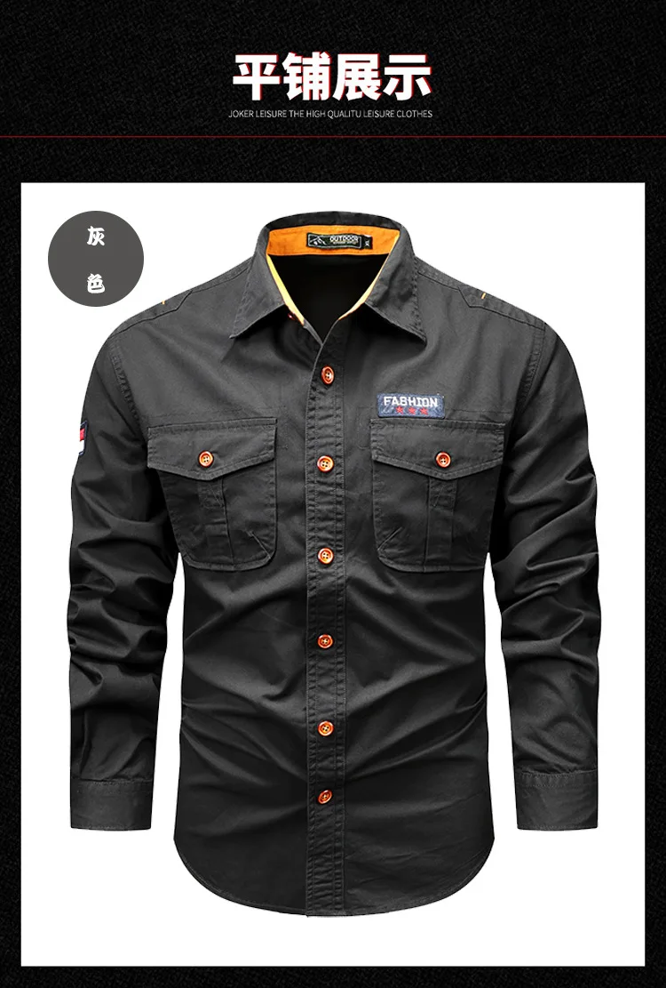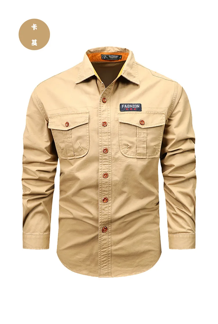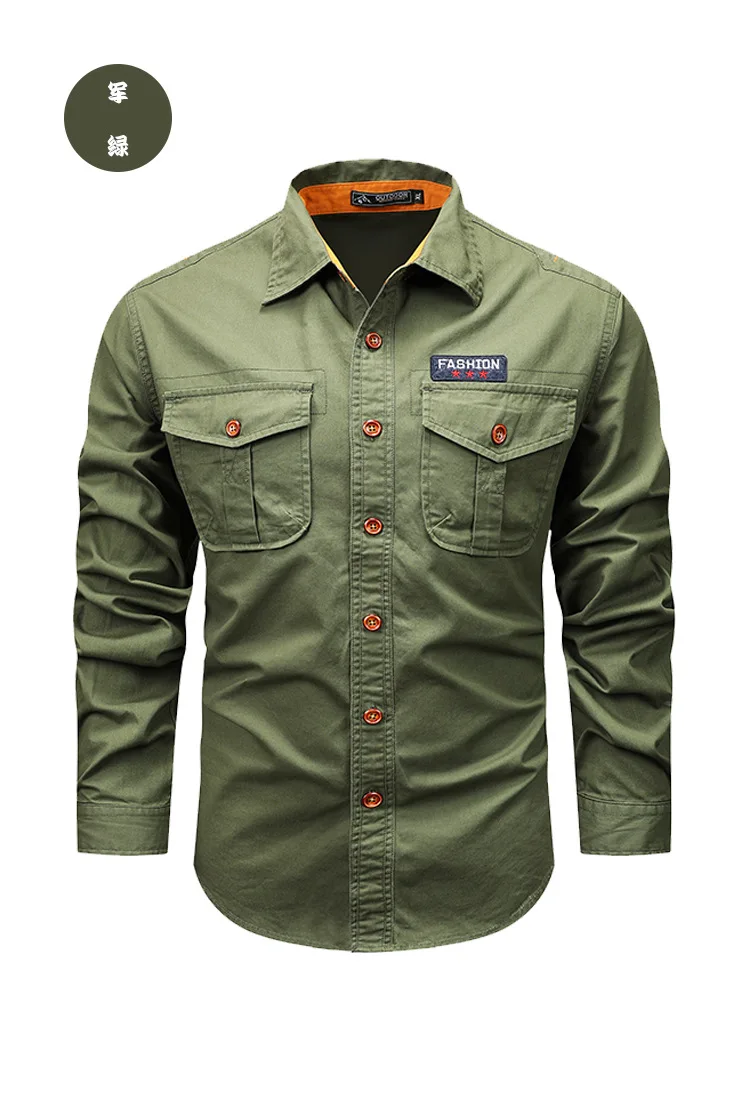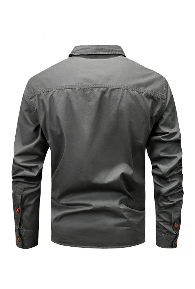 Men Long Sleeved Multi Pockets Cargo Shirts High Quality Man Outdoor Loose Tooling Shirts New Spring Male Cotton Shirts Size 5XL