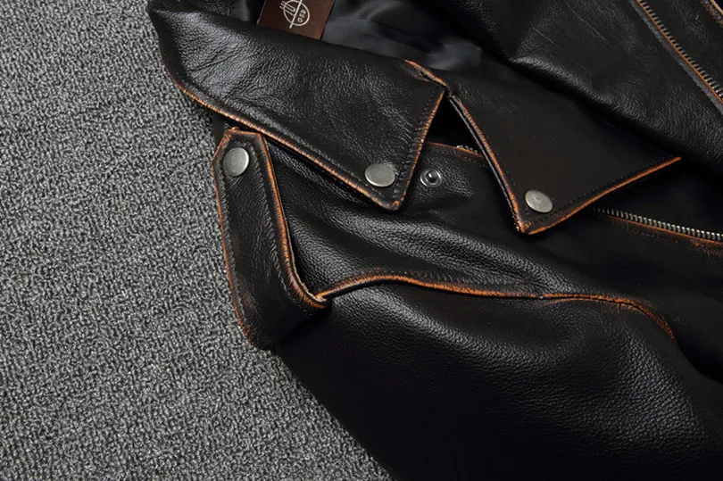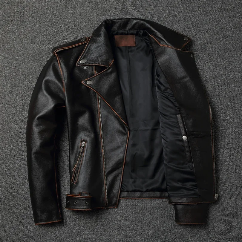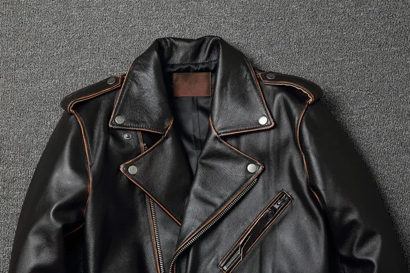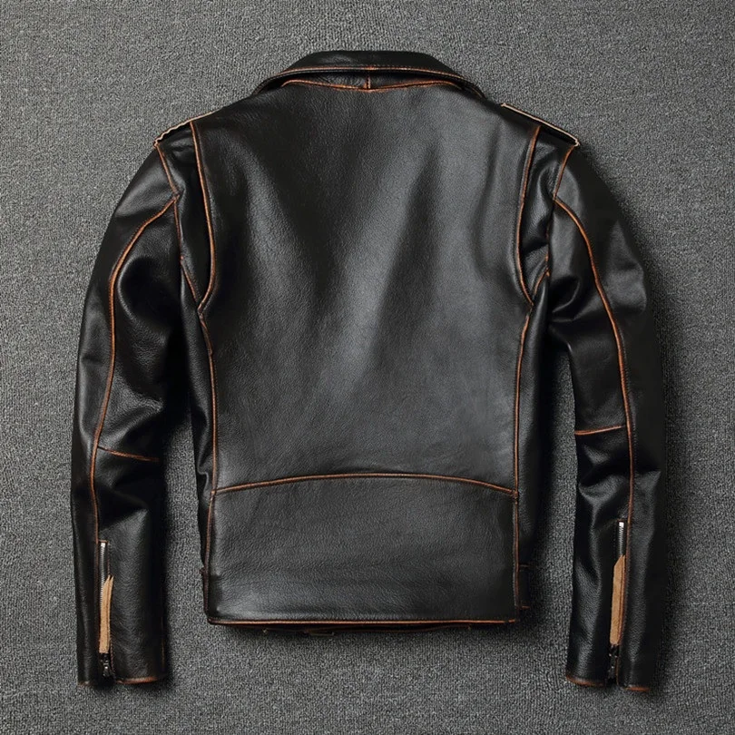YR!Free shipping.sales.classic motor biker genuine leather jacket.slim cowhide coat.fashion vintage leather clothing.plus size
