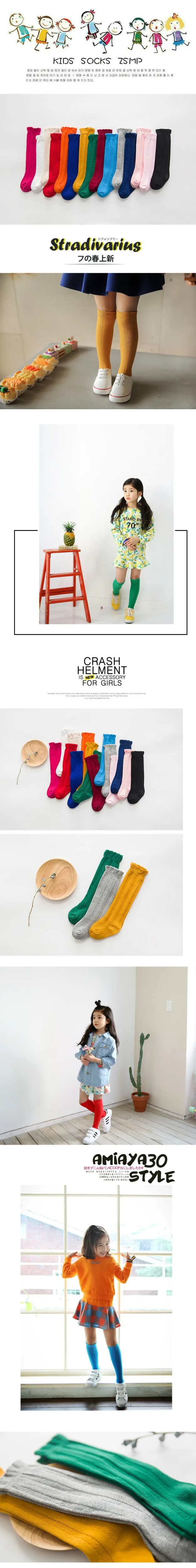 YWHUANSEN 1 Pair Spring Autumn Winter Cotton Lace Double Needle Children Breathable Socks Solid Baby Girls Knee Socks School