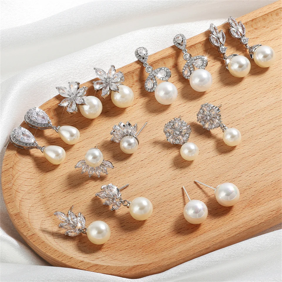 ZAKOL Korea Fashion Imitation Pearl Flower Stud Earrings Shinny Marquise Zircon Wedding Earring for Women Party Jewelry Brinco