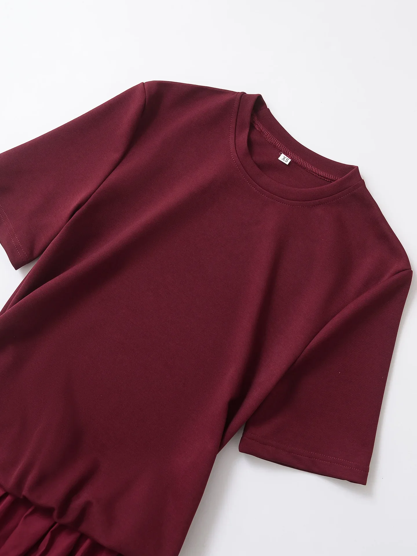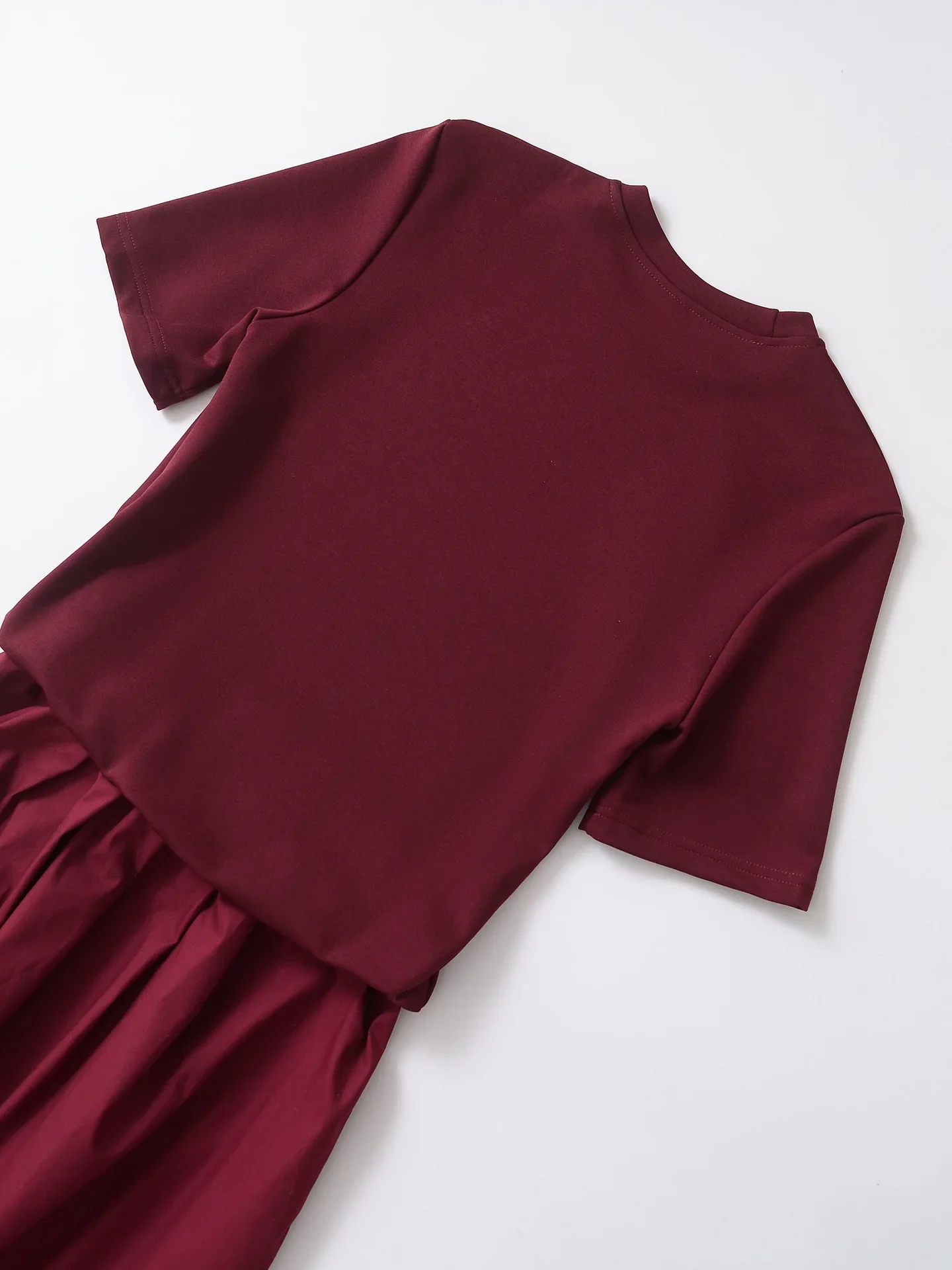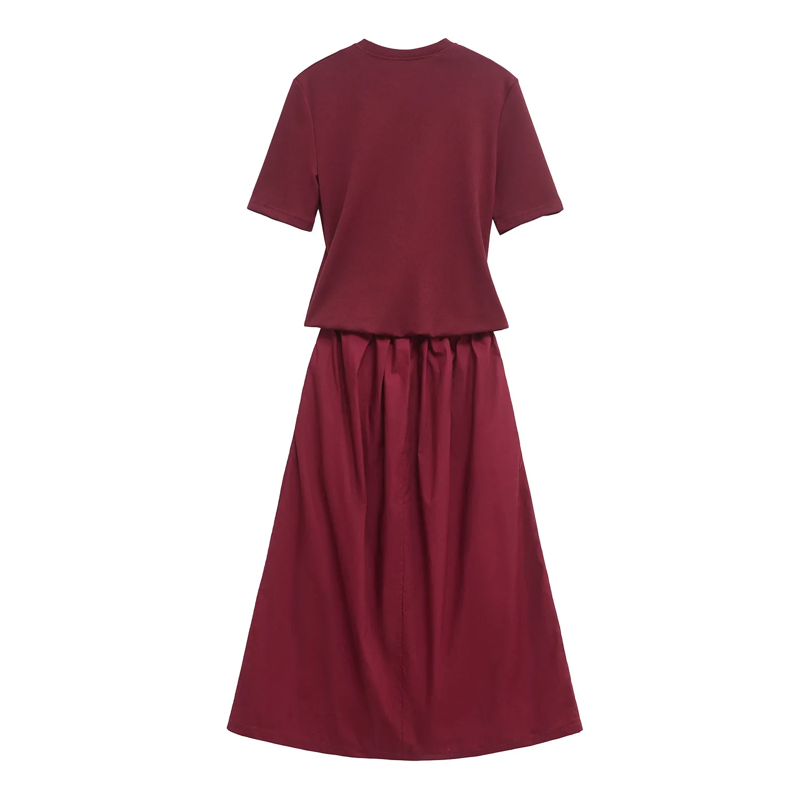 ZBZA Women’s Contrasting Midi Dress Round Neck Short Sleeves Splicing Design Classic Long Skirt Spring and Summer New Chic Skirt
