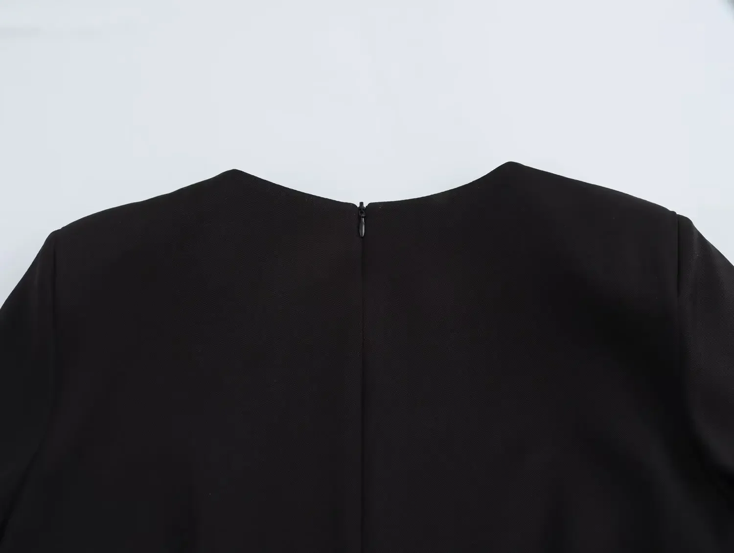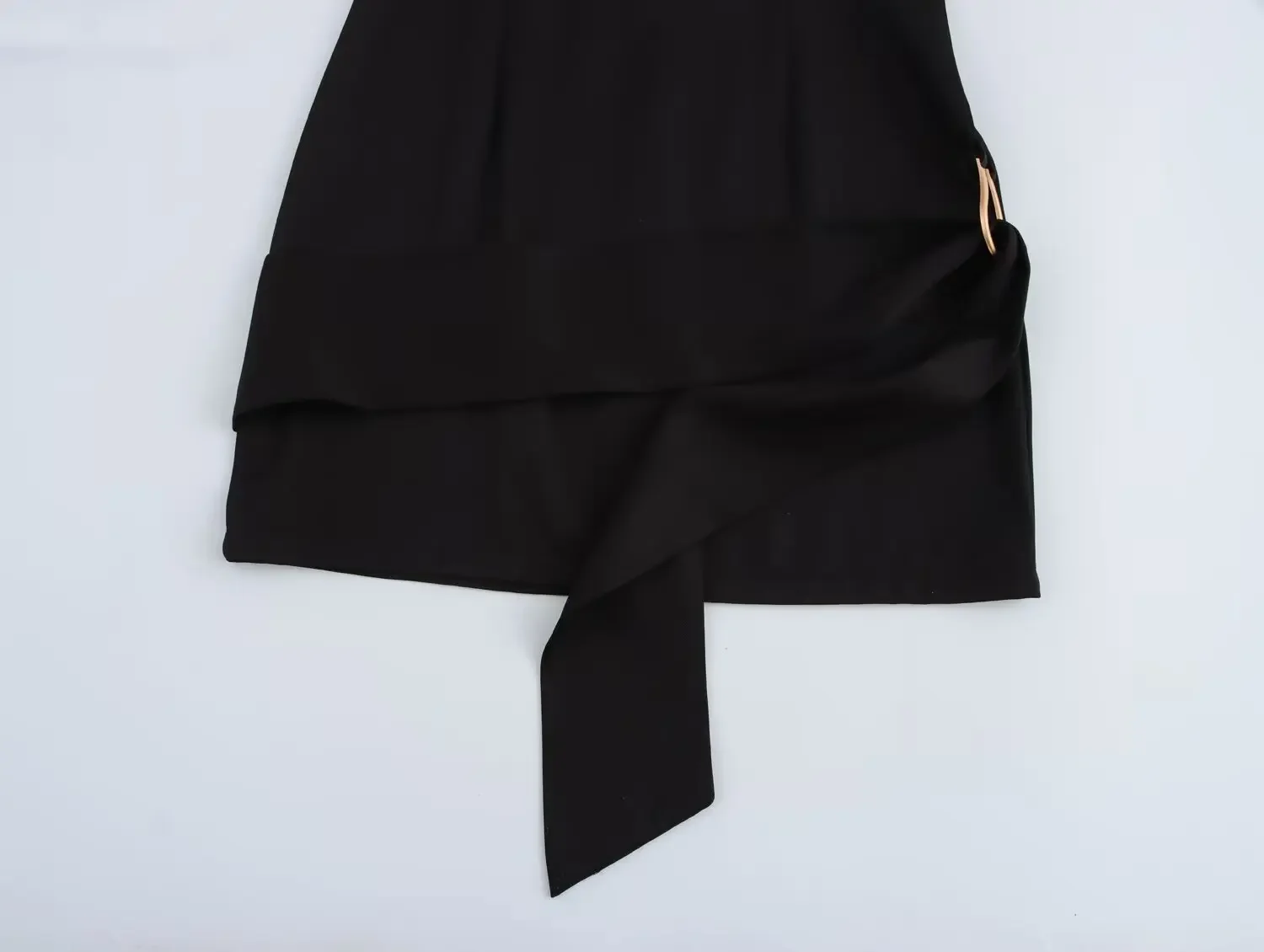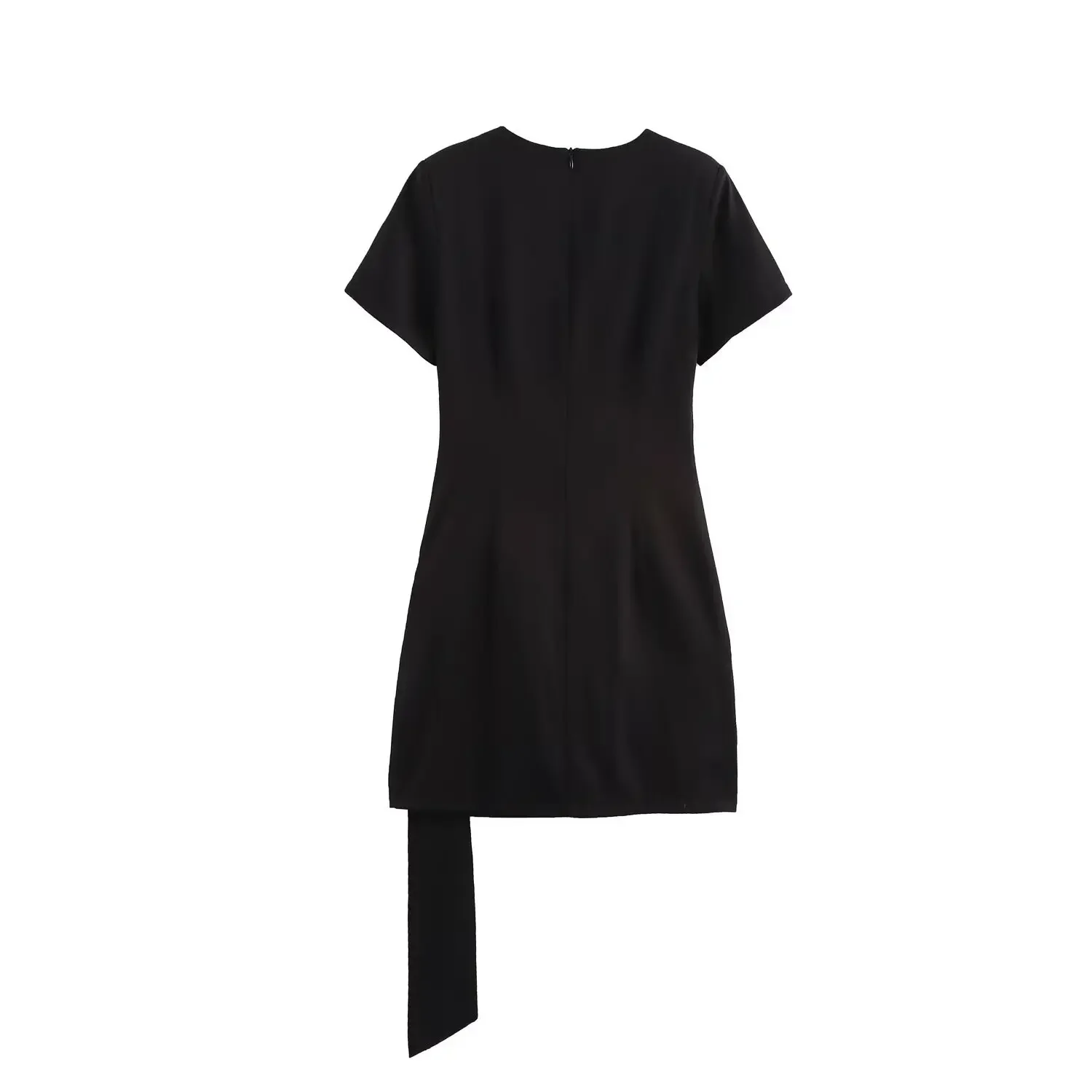 ZBZA Women’s Horseshoe Button Dress Round Neck Short Sleeve Waist Hidden Zipper Tie-up Mini Skirt Spring Summer New Chic Skirt