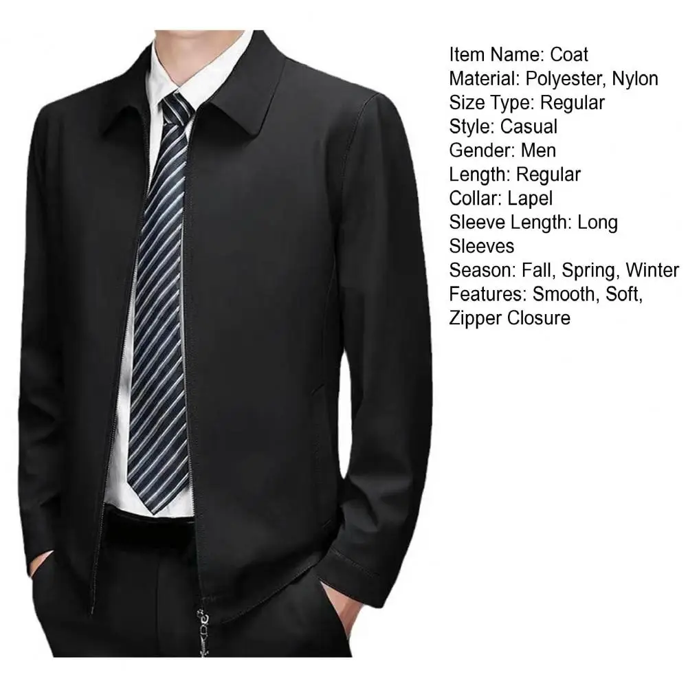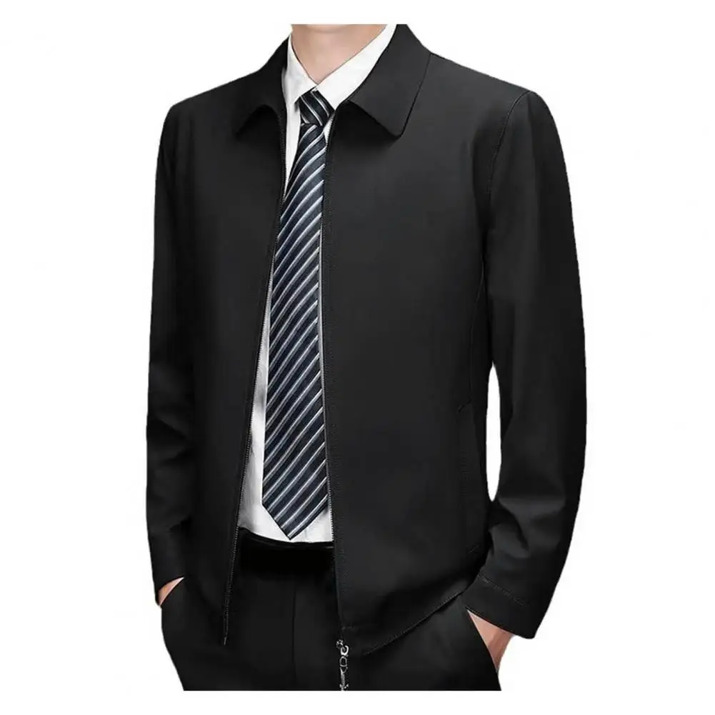 Zipper Closure Casual Jacket Mid-aged Father’s Daily Jacket Smooth Zipper Closure Cardigan for Men in Fall Spring Turn-down