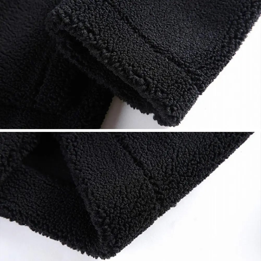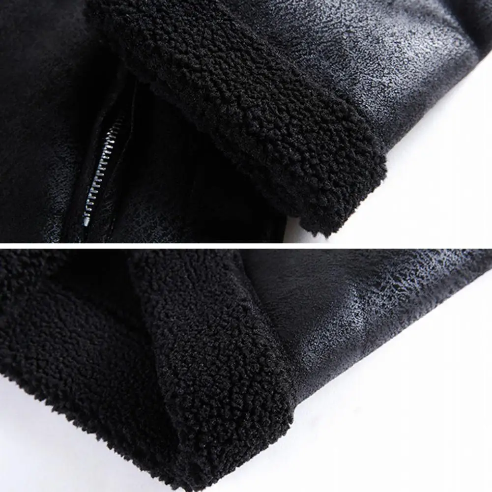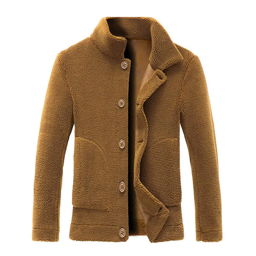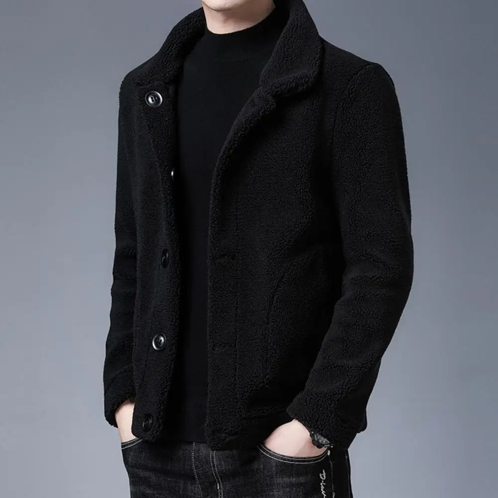 Men Jacket Lapel Long Sleeve Single Breasted Coat with Pockets Solid Color Reversible Design Polar Fleece Faux Leather Outwear