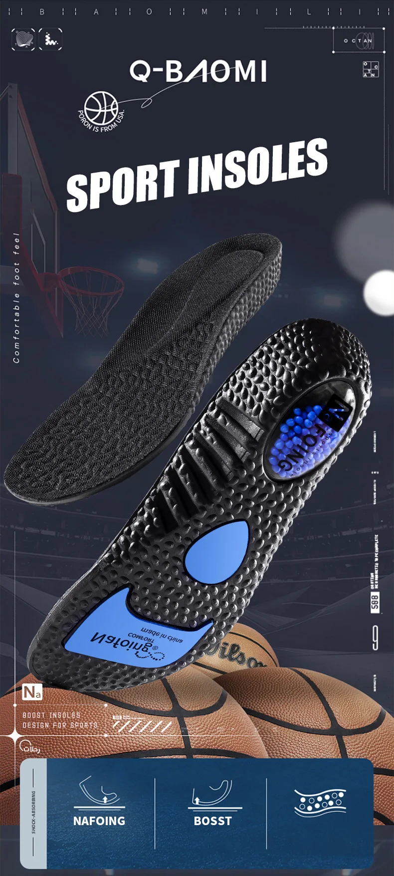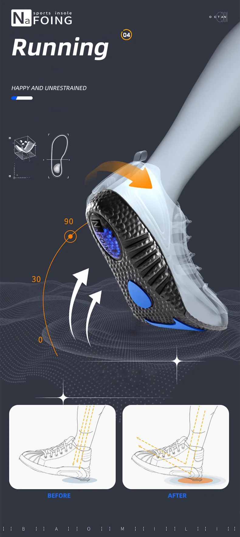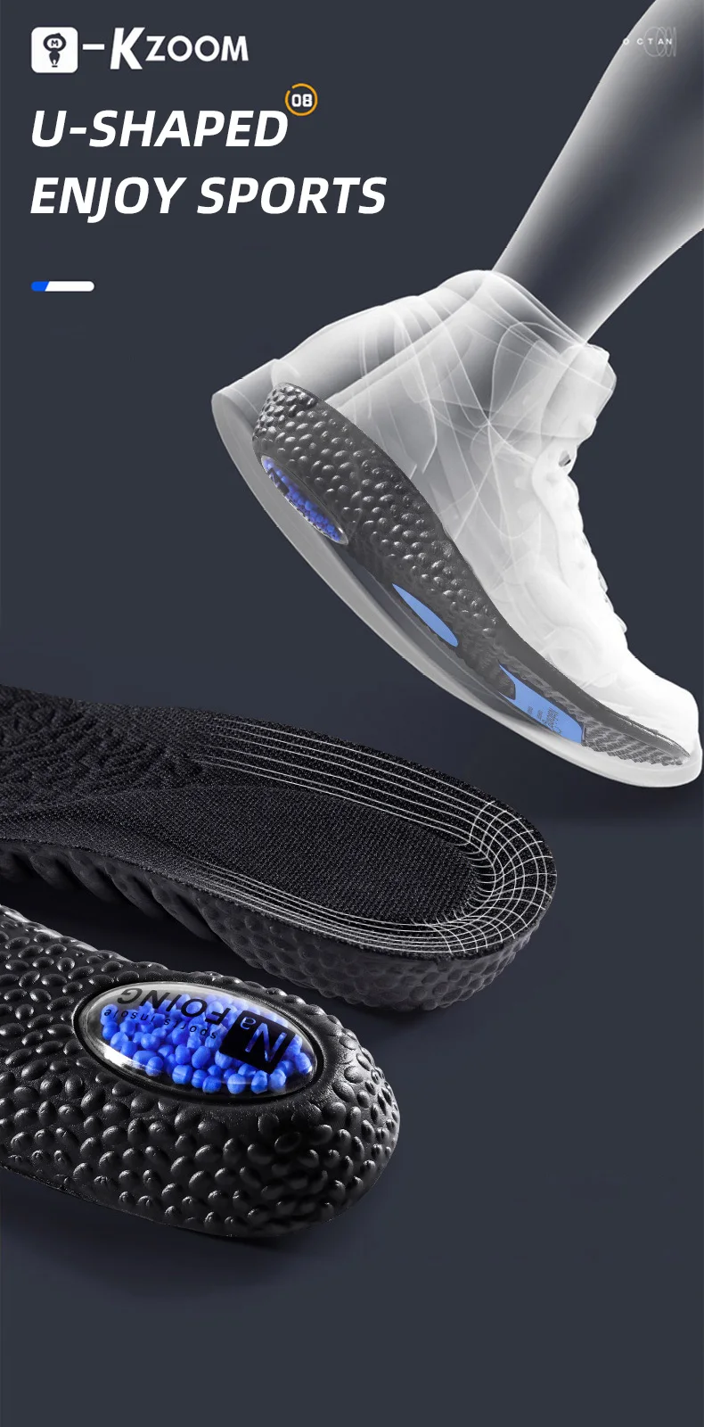 ZOOM Boost Sport Insoles High Elastic Shock Absorbing Arch Support Flatfoot Orthopedic Insoles For Feet Ease Pressure