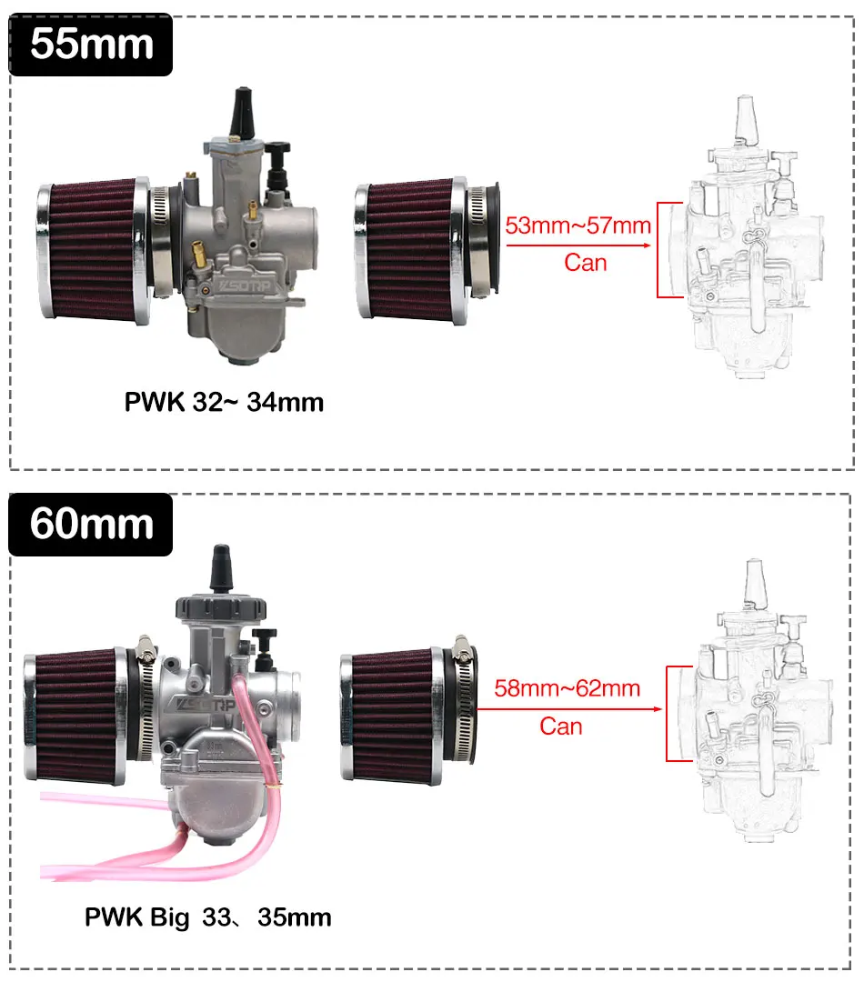 ZSDTRP 38 42 45 50 55 60mm Motorcycle Air Filter Motocross Scooter Air Pods Cleaner for PWK 21/24/26/28/30/32/33/34/35