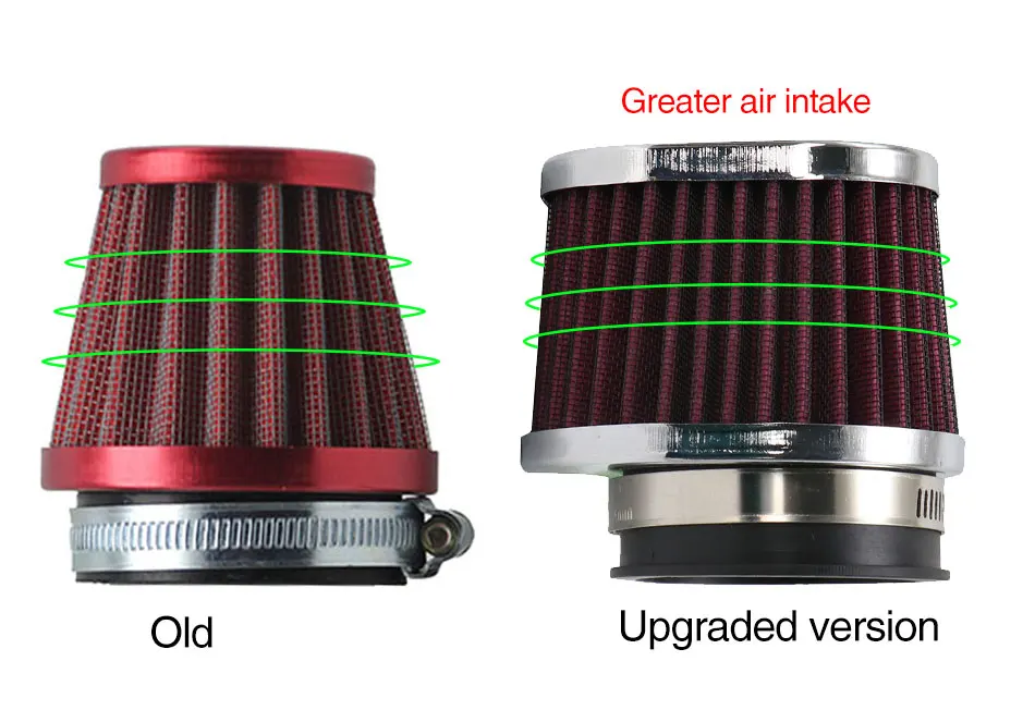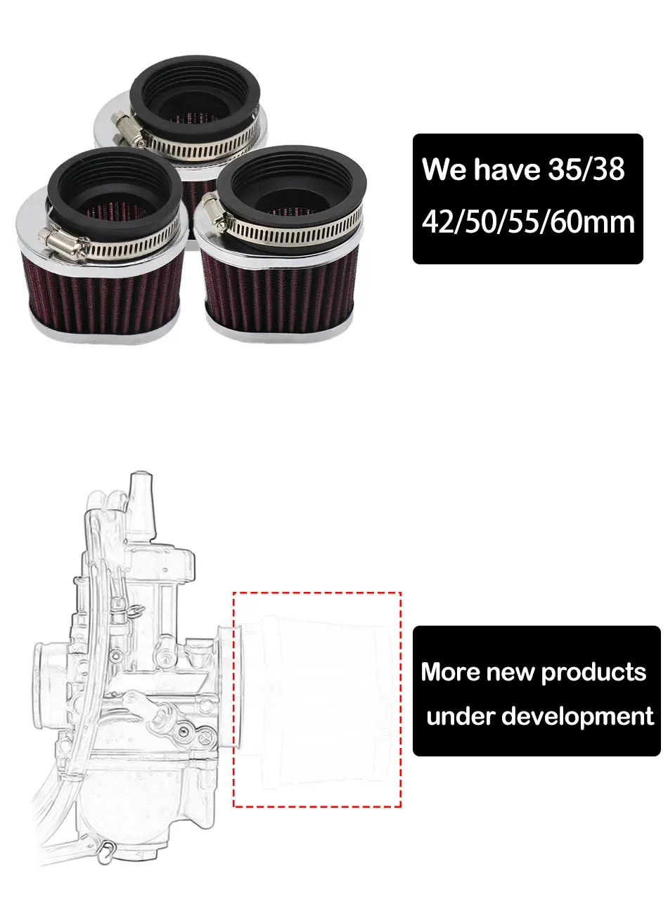 Product Name: High flow air filter Product Color: Red Product Material: Non-woven Fabric, Polyurethane Product Size: 38/42/45/50/55/60mm