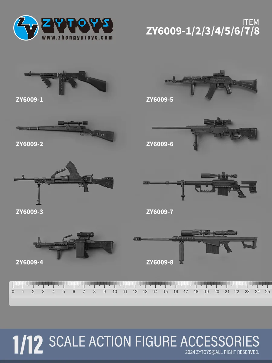 ZYTOYS ZY6009 1/12 Male Soldier Weapon 98K AK74 MK43 BREN M200 M82A1 M1928 MK13 Toy Model For 6Inch Action Figure Accessories